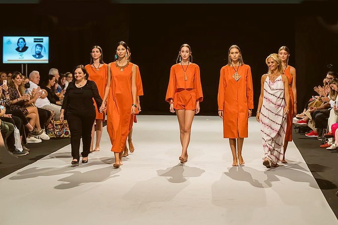 Crédito:- Acervo Raquel de QueirozRaquel ao final do desfile com as modelos