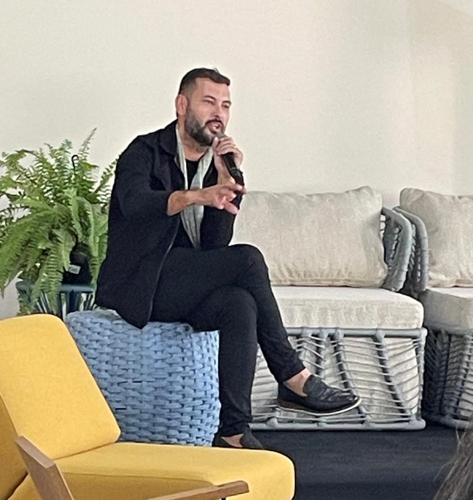 Ralph Carvalho, Ceo Rusti Móveis Decor palestrou sobre “Mobiliário sustentável: a revolução do eco design”. Ralph elucidou de forma brilhante como o eco design brasileiro é valorizado, e visto como o novo luxo pela exclusividade, falou sobre a diferença entre manejo florestal, onde se extrai a madeira de forma cirúrgica dando espaço para as árvores menores e permitindo que a luz promovam seu crescimento e reflorestamento, replantio de grandes áreas com espécies de crescimento rápido.