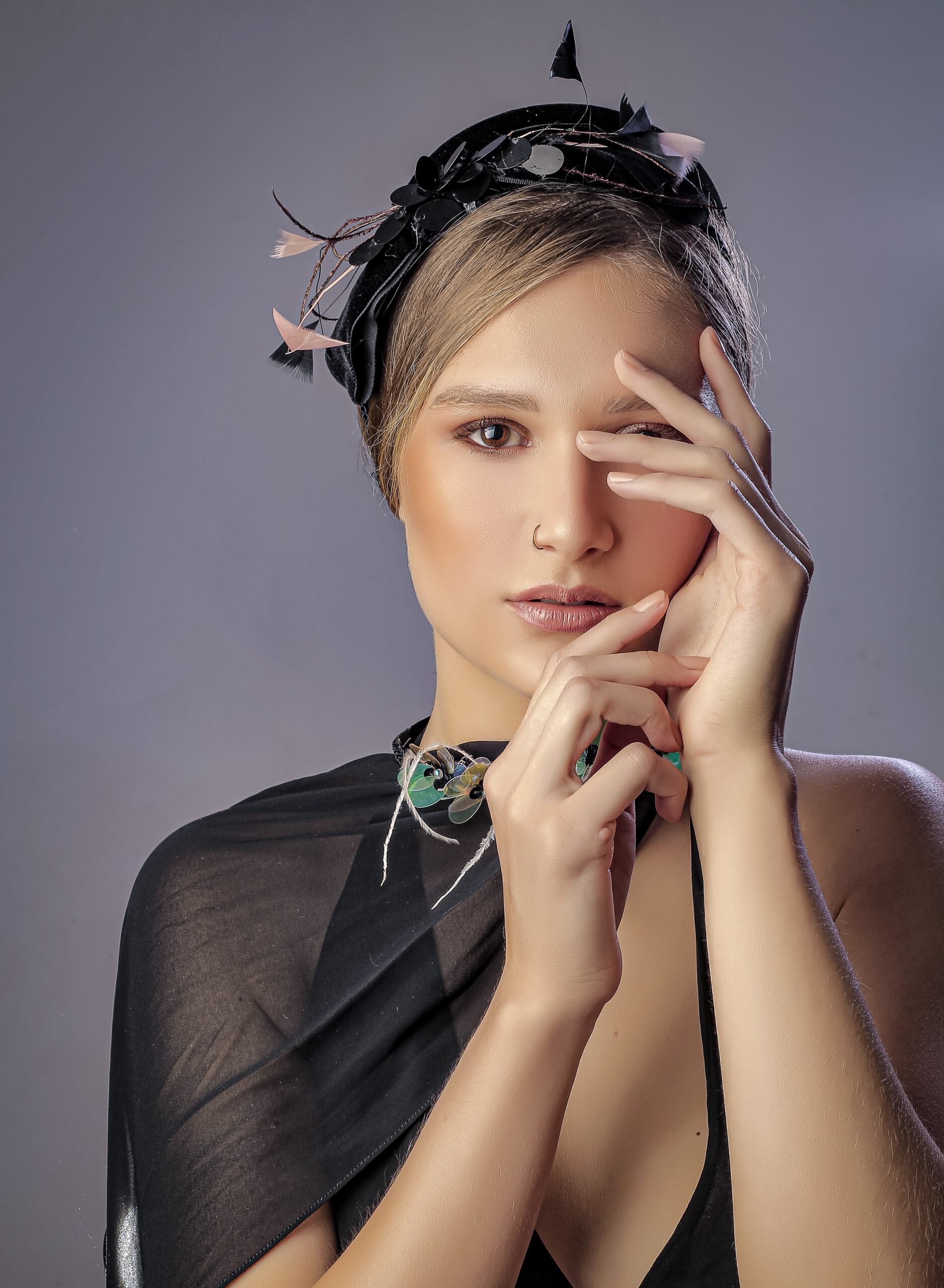 A Coleção Elegância foi criada para compor looks mais sofisticados! A ideia surgiu quando Laura revisitou seu acervo de criações da época da faculdade, inspirado em dois ícones do cinema mundial, Carmem Miranda e Marlene Dietrich. Nesta temporada suas  criações estão mais voltadas para acessórios. Então Laura criou peças para enriquecer os looks, através de tecidos nobres, como veludo, bordados e penas.