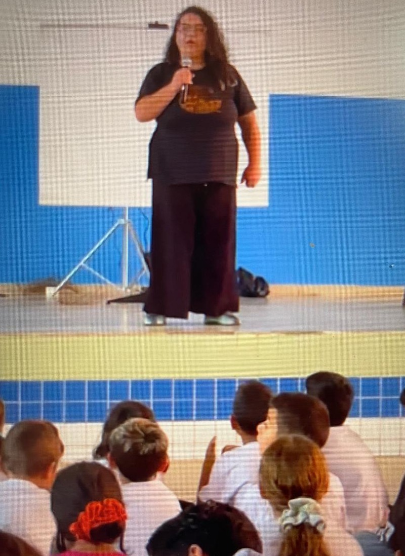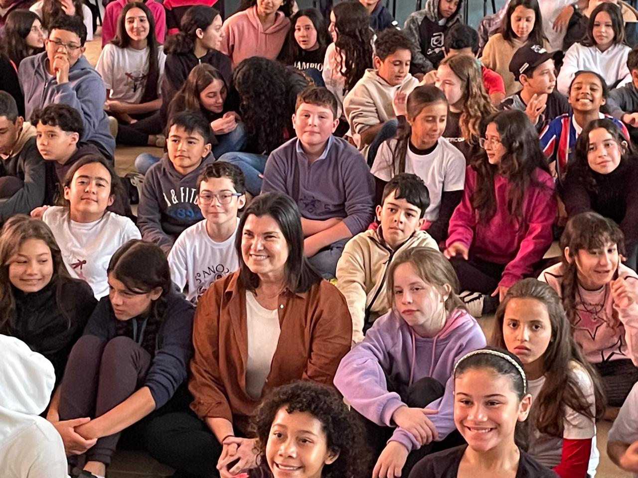 Entre os momentos marcantes do evento, destacou-se também a participação da autora do e-book, Sílvia Regina de Toledo Cabral, que subiu ao palco para conversar diretamente com as crianças. Com serenidade e brilho nos olhos, e emocionada com os olhares e afeto das crianças, agradeceu a oportunidade de estar com eles e ressaltou a importância de proteger o muriqui e toda a biodiversidade que o cerca, lembrando aos pequenos que cada gesto, por menor que pareça, pode transformar o mundo. Sílvia tem uma trajetória profundamente conectada à educação ambiental e à cultura. Como empreendedora cultural, escreveu três o Poeta® (CNPq – USP), alcançando um público não pagante estimado em 20 mil crianças.